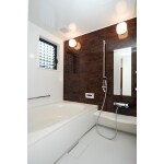 浴室はLDKの雰囲気とテイストがマッチするようにアクセントパネルの色味を合わせました。