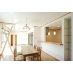 全体的にナチュラルテイストをご希望されていたので薄いパーチ系等の色で合わせました。 キッチンは対面キッチンにし、カウンターを無垢の檜をクリア塗装で仕上げました。存在感抜群です。 耐震診断書に基づいて壁量をアップさせ構造にも配慮しました。