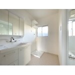収納充実の明るい洗面室