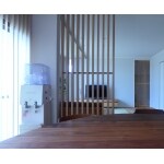 玄関ホールも同じ色調にするため、 和室の戸襖の貼替や正面のクローゼットドアの交換、 そして玄関収納もオークの無垢床材に近い色調の建材をご提案させていただきました。 玄関から見える階段のリフォームは今回は見送りとなりましたが、予算内で出来る限りのリフォームをご提案致しました。