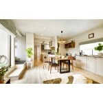 自然素材を使われたお客さま邸は、ホワイトが占める割合が高い爽やかな佇まいです。 そこにダイニングテーブルや造作家具のつまみに使用されているブラックで引き締め、ファブリックにグリーンを用いることで、家族みんながリラックスして寛げる優しい空間となりました。 バルコニーからの光に照らされて、飾られたグリーンの葉もいっそう瑞々しく輝いています。