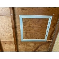 雨染みの周辺に点検口を取り付けます。 これで雨漏り箇所を特定します。