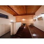 漆喰壁、そして昼の光と夜の照明器具によって出来上がった空間は小さな教会のようです。玄関には靴やコートなどの収納、非常時の防災セットと簡易水道の確保、好きな絵が飾れるギャラリー、カフェのようにお茶が出来る溜りの空間、大きな観葉植物が置けるホールなど、いろいろな機能を設けることで、この時期にプライベート空間に人が入らなくても事済む玄関となりました。