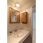 幾何学模様のクロスが美しいスッキリとしたレストルーム