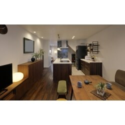 どっしり構えた観音扉のタンスや 埃でくすんだ壁やカーテン、 シミの浮き出た天井…。 築40年の傷みと汚れをきれいに改修し かつての 「おばあちゃんの家」 が 季節や気分に合わせて 「お気に入り」 を飾り楽しめる 「ギャラリー」 の景観に様変わりしました。 ご家族が集まるLDKは 広さを最大限に確保するため 玄関から入って 「すぐ」 に始まる 大胆な間取りを計画しました。 玄関から数歩で 『メインリビング』 に繋がります。 生活ゾーンを縦断する たたきから 1階の最奥までを結ぶ動線は シンプルな直線のプランニングで 家事効率のアップはもちろん、 車椅子や補助具の歩行も安全に行えるように計画しています。 1階の最も奥にあたるスペースには 視線を気にせずゆったりと過ごせるプライベートリビングを造りました。 キッチン間の壁を抜いたり キッチン本体の方向や配置を調整して 階段を挟んだキッチンとプライベートリビングが 円滑にコミュニケーションをとれるよう工夫しています。