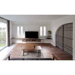 ご夫婦ともに古民家へのあこがれが強い お客様ですが ふたりのお子様との生活や 将来的なメンテナンスの頻度・費用などを考えて 現実としては 「古民家のような要素を取り入れた 物をできるだけ見せない、シンプルで生活しやすい空間」 をご要望されました。 ご所有の住宅がツーバイフォー(2x4)工法のため 大きな間取り変更は断念せざるを得ませんでしたが その分、実績に裏打ちされた 効果的な工夫を取り入れて ご希望に限りなく近づけたデザインプランをご提案しました。 適材適所に確保されていた収納は 既存をそのまま生かすことに決め 出来る限り造作や装飾を加えない シンプルなスタイルを貫きました。 加飾を求めず 自然体で過ごす 「和」 のインテリアは 窓から眺める鎌倉の自然と見事に溶けこんで "内" ・ "外" の境界をふと曖昧に。 ふだんは閉じている和室の障子は やわらかな明暗を陽の光で演出し 和空間とリビングとの境に 「静」「動」 を意識させる 雅な風情を造りました。 借景した古都の息吹を感じながら 家族史をつむぐ贅沢な空間が ご一家の新しい暮らしの場になりました。