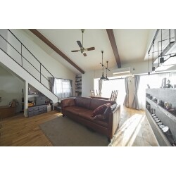 長年住まれたご自宅の傷みが気になり、 お子様が独立されたことを機にリフォームをお考えになられたお客様。 お部屋を1部屋取り込み、 床にオーク材の無垢フローリングを張り、勾配天井にして、 アメリカンカジュアルな家具が似合う広くて明るいリビングに。 壁に囲まれ閉鎖的だったキッチンは向きを変え、アイランド型のオープンキッチンに。 トイレの位置を動かして浴室も広くし、ご家族3人それぞれのお部屋に収納、 玄関にはシューズクロークを設置。 畳下収納の小上がりはご主人様、階段から見下ろすリビングの景色は奥様のお気に入りになりました。