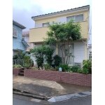 色を全体的に考慮して、イエローにて塗装。 屋根・外壁・門塀・雨樋 そして植木の緑と お家としてのバランスもよく仕上がりました。
