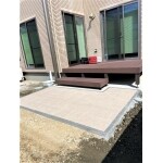 新築の外構・エクステリア工事のご用命をいただきました。 ご要望とご予算に添ったパースを作成し商材サンプル等で具体的に計画を進め、住宅街の周りの環境と調和するご提案をさせていただきました。 駐車場コンクリート工事は2級砕石敷均し、転圧工、木枠、伸縮目地、ワイヤーメッシュ筋敷設、生コンクリート、打設均し押え後、カーポートはLIXILネスカF型2台用をロング柱で設置しました。 玄関に続く階段も計画しブロック工を施し、土間下地コンクリート打設・均し、ユニソンのロッセクラシコでタイルを張りました。横手にはスマート宅配ポストを設置。 庭に面するウッドデッキ前にBBQスペースをご希望でしたので、タイル工事を施しました。2級砕石敷設・転圧工・ワイヤーメッシュ筋敷設、下地コンクリート打設・均し、ユニソンのロッセクラシコでタイル貼り。フラミアでボーダー縁取りをしました。