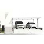 駐車場コンクリート工事は2級砕石敷均し、転圧工、木枠、伸縮目地、ワイヤーメッシュ筋敷設、生コンクリートを厚み10センチメートル、打設均し押え後、カーポートはLIXILネスカF型2台用をロング柱で設置しました。