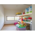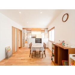 大人4人フルタイムで仕事をし、協力し合いながら幼いお子さんと暮らしているご家族。家族みんなが快適に過ごせるLDKとするために、まずは収納不足の解消をご提案。リビングに溢れたおもちゃや生活用品を収納するキッチン北側の大きめ収納により、LDKに団欒のスペースを確保。毎朝仕事へ行く前に晩御飯の支度と洗濯をこなす奥様とお嫁様のために機能的なキッチンと効率的な家事動線を提案。各所必要な量の収納を配置し、室内干し場を十分に確保すると共に、内装材に調湿効果と消臭効果のある漆喰と無垢材を採用して洗濯物の部屋干しにも配慮しました。