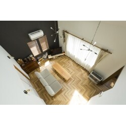 希望のヘリンボーンの床材はウッドタイルを使用し施工テクニックを駆使して実現しました。プラスアルファのアイディアと工夫で、イメージ以上とご満足いただきました。