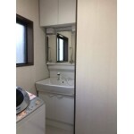 弊社でお値打ちな商品のハウステックの洗面台で 3面鏡と吊戸棚を設置した事により、今まで隠せなかった物が 収まりスッキリとした空間を作り上げる事が出来ました。