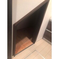 洗面室の隣が階段なので、階段下収納を作りたいとのご要望でした。