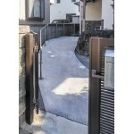 門扉から玄関までのアプローチの段差を無くし、コンクリートでスロープ状に施工しましょう。開き戸の玄関前で、介助者が車いすを取り回しできるように、平らなスペースを広くとった方がいいと思います。より安全に配慮し、手摺りも取り付けましょう。 介護保険の補助金は沼津市の上限金額を申請可能です。 元々天然石を使った和風の情緒ある玄関アプローチですから。せめて、大きな庭石は元のまま残し、和風の景観をなるべく損なわないように配慮しましょう。
