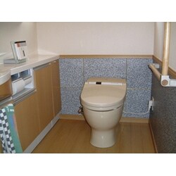元々広くスペースのあったトイレでしたが床や壁はタイル貼で冷たくお掃除が大変でした。ある時おじい様がすべって転倒された事がリフォームのきっかけになりました。あまりに広くて無駄なスペースを何とか有効的に活用できないでしょうかとのご相談でした。 私共はまず廊下との段差をなくし、バリアフリーでトイレに入る事ができる様に、そして床材にはあたたかみのあるアンモニア対応のフローリングでの仕上がりをご提案しました。 無駄に広かったスペースには、トイレカウンターを配置して、手洗いと収納を充実させる事で、有効的にスペースを生かすご提案ができました。 要介護のおじい様もゆっくりとトイレが出来る様に便器は最新のタンク無し便器を採用し、オート洗浄で流し忘れの心配を解消しました。 床材はアンモニア対応フローリングですので、しみなどは付きにくく、お掃除もしやすくなりました。手洗いカウンター下には収納をもうけて、トイレ用品は全て中に収納する事ができるようになり、トイレが非常にすっきりとまとまりました。