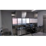 間仕切り壁を設置して、壁面に厨房機器をおけるようにしたい。