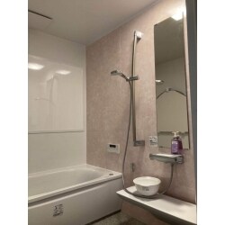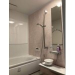 | その他採用機器・設備 | ~UB仕様~ 床:ライトグレー(ラグ調) カウンター:ホワイト アクセント:マテリアルアロマピンク 周辺パネル:プリエホワイト 浴槽・エプロン:ホワイト ~浴室面クロス~ リリカラ XR 565 |