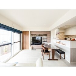 廊下が暗いという悩みから、各部屋の間取りを考えていきました。 マンションの角部屋で各部屋に窓がたくさんありその光を廊下に通るよう採光ドアへ変えたり、リビングからの光を多く取り込めるようにまっすぐな廊下としました。 キッチンの作業スペースを広げ奥様が十分に調理ができるようになり、浴室もご主人様がゆっくりくつろげるよう足が延ばせるサイズに大きくしました。 収納が少ないという問題もありましたので、各部屋それぞれに収納を造りました。 内装も白を基本として部屋全体がとても明るくなりました。