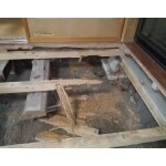 畳を上げてみるとシロアリの食害跡がありました。下地床板も蟻道と食害の痕跡がある為、床下地は解体して新規に組み直し、食害の大きい畳は新畳に交換するご提案をいたしました。 シロアリ被害は隣の和室にもかかっていましたが、予算を抑えたいとのご要望にて、解体後に状況を確認し最小限の改修にとどめることになりました。 その結果、全面的に被害を受けている和室は部屋全体の床下地改修と畳の表替え(内1帖は新床入替)、そして隣の和室については畳2畳分のみ床下地改修を行いました。