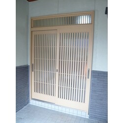 築後20年が経ち、玄関サッシの開閉動作に不具合が生じていました。また、玄関は家の顔、明るめの雰囲気で、なおかつシンプルなデザインのものに取替えたいとのご要望がありました。 建物が和風造りでしたので、その雰囲気を崩さないようにシンプルで明るめな、ヒノキ調の万本格子のデザインをご提案させていただきました。 玄関サッシの取替えは、どこまで補修が出るかの事前確認が重要です。内部および外部の枠廻りとポーチのタイル補修をどこまでするかがポイントになります。