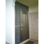 木製の玄関ドアが老朽化し、塗料がはげ落ち汚くなってきたため、ドアを取り替えたいというのがリフォームの動機でした。 お手入れの簡単なアルミ製ドアに取り替えたいとのことでした。 玄関ドアの取り替えの場合、通常枠の規格が合わず、枠も取り替える提案をするのですが、既設枠を取り替えず、扉部分のみの取り替えが可能であることが判明したためリフォームドアをご提案しました。 既設の枠を利用することができることが判明したため、扉部分のみの取り替えとなりました。 リフォームドアにすることで、工期が1日に短縮され、コストも大幅に削減できる利点があります。