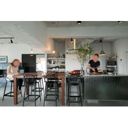 キッチンのみで独立していたので、集まれるキッチン、料理をしながらお酒をたしなめるキッチンにしたい。ダイニングバーのような雰囲気にしたい。