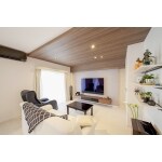 21.5帖のLDK フローリング+壁紙を一新【白×ダークブラウン】