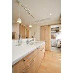 水廻りスペース、建具、フロア材を全てパナソニック製で揃えることで、すっきり統一感のある空間に仕上がりました。