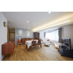 特殊な構造のマンションゆえに、家具の配置が難しいLDKで、さらに長い梁があったことから照明の明るさにもばらつきがありました。 また、隣接するご主人様の個室は、間口が狭小であったことからリビングと区切られた間取りで、もっと広く見せられるようにしたいとお考えでした。