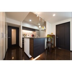 中古で購入したマンションのキッチンを交換して、対面部分の垂れ壁や袖壁を撤去したい。 カウンターに収納を取付けて、照明もこだわりたい。 フローリングの傷みが気になるのでなんとかしたい。