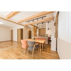 木の温かみが随所で感じられて北欧風家具がぴったりマッチするインテリアにするため、無垢のナラ材フローリングをご提案しました。足触りが良いとご好評です。