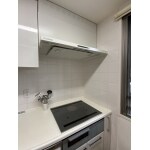 レンジフードは薄型でお手入の簡単な仕様で、色もホワイトになり、IHもシルバーになりすっきりとしたキッチンになりました。