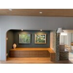 家の外周に基礎がなく、屋根の重みで一部建物が崩れていました。外壁もトタン張りでサビがきており、かなり建物全体の劣化が進んでいる状態でした。庭は手入れができていないので荒れ放題。水まわりは、浄化槽から下水道へ繋ぎ込みをしライフラインを一新。道路のセットバック。様々な問題を一つづつクリアしていきました。玄関ドアと庭に、面した掃き出しサッシは5年程前にリフォームしたばかりなので残したいとの要望もあったので玄関の位置は変えず、田の字になっていた和室をリビングと寝室に。水まわりは一部セットバックに掛かる部分を減築して北側へまとめました。耐震は、0.1から1.0へ補強計画をし基礎から建物全体を見直しました。あふれるモノのせいで埋もれていたお母さまの絵は、キッチン、寝室、リビングとどの角度からも見える位置にギャラリースペースを作り、離れていても、いつでもお母さまを想い出せるように工夫をしました。