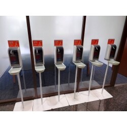 自動噴射タイプの手指消毒用ディスペンサースタンド(6台)を設置させて頂きました。