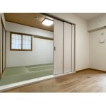 リビングと和室の間仕切り壁には3枚連動引戸を設置しました。 扉を開けるとリビングと和室が一体化して広々と使用することができます。 フローリングはライブナチュラル ネダレス145 LLー40の仕様です。 お色はブラックチェリー色をお選び頂きました。