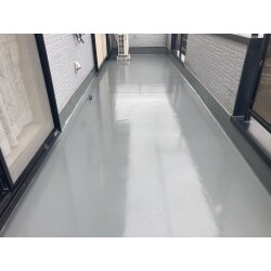 ウレタン防水工事完了です 継ぎ目もなく防水性も復活です 見違えるほどにキレイになりました
