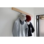 家族の靴や雨具、お子様の遊具も散らからないよう、大容量の収納にしました。天井までのトールタイプ収納にし、足元を浮かせることで土間に靴が散らからないようにしました。鏡の効果で空間も広く感じさせるようにしました。また、玄関先にコートなどを掛ける「ちょこっと掛け」やインテリアを飾るのにも便利なフックを取り付けました。花粉症の時期は、家に花粉を入れないように、玄関先で上着を脱げるようになります。