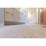 ショールームで商品をご覧になった際に洗面化粧台のクリスタルカウンター柄入り『彩糸(いろいと)』をとても気に入ってくださりましたが『彩糸(いろいと)』は予算内では難しい状況でした。せっかく気に入っていただいたので再度見積り内容を見直しました。 洗面所の床を塩ビタイルから大理石調の長尺シートに、トイレの手洗い器は既存のままなどお客様の満足度がさがらないように仕様を変更することで対応しました。 最終的には、クリスタルカウンター『彩糸(いろいと)』をまた、洗面所の鏡下には、ラメ入りのタイルを入れることもできました!! お客様が気に入った商品や仕上がりになるように予算をおさえられるところはおさえてのリフォームでした。