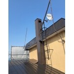 施工後の屋根です。 集合円筒のモルタルに水が入っている状態が見られたため、板金を巻き防水と補強をご提案し、採用いただきました。 煙突も防水と補強をしているため、水が入っていた状態から改善されています。