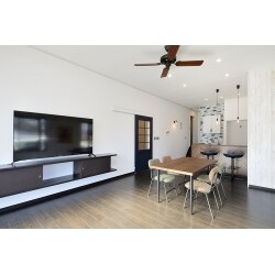 ・若夫婦様のお好みを十分把握の上、飽きのこない内装を心がける。 ・リビングとダイニングキッチンとの間にあった段差位置を移動、背後にパントリーを設える事によりけじめのある使い勝手の良いリビング・ダイニング・キッチンをご提案。 ・再利用可能なもの、ご支給していただけるものをピックアップ。あきらめざるを得ないものもしっかり協議 ・既存電気配線もできる限り整理