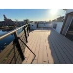 人工木でネジが見えない仕様になっておりますのでとてもきれいにみえます。 腐りにくく割れづらく、耐侯年数が10~15年と長くなり長く使えるウッドデッキになりました。