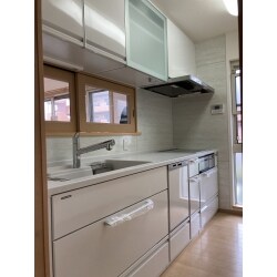 まだ綺麗で、容量のあるカップボードはそのままに、キッチン本体のみ交換で費用も抑えながら、違和感なく、機能性や収納量をUPさせて頂きました。 お子様が産まれて、何かと忙しくなる奥様に家事らくシンクや電動昇降の吊戸棚は役立つ事間違いなしです。