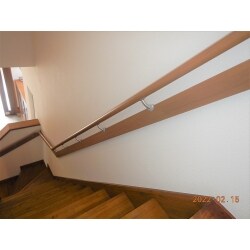 階段の手すりの取り付けをご用命いただきました。弊社では日々、安全・安心して過ごせるお住まいをご提案しております。 今回は介護予防の補助金利用に伴い、役所への書類作成と提出もスムーズに整えました。施主様にご協力いただいたおかげで、仕上がりもご要望に添えたとのことで嬉しく思います。 手すり棒に袖口や衣類が引っ掛からないよう、エンド部位はⅬ型手すり棒を使用して施工させていただきました。 手すりがあることで、ご家族皆様が安心して昇り降りができれば幸いです。