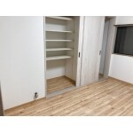 床は下階に音が響きにくいクッションフロアー、 好みの空間が演出できるクロスの貼り分け、 希望のクロス、クッションフロアーに合った洋風建具 のご提案を行い採用いただきました。 収納内部も可動棚やパイプの付いた棚等を使い、 お客様の持ち物に合わせて打合せ、施工。 エアコンも取付から時間が経っていたので、 壁紙クロスの張付と共に新規の交換に至りました。
