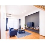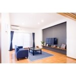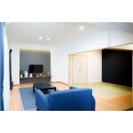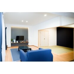 「青なくしては世の中は成り立たない」とおっしゃるY様。青色がとてもお好きで、所々に青を感じられるようにしました。 LDKは昔ながらのつづき間をLDKと畳コーナーにし、一家団欒しやすい空間にしました。 TVコーナーは間接照明で窓のない壁でも解放感を感じられるような空間にしました。