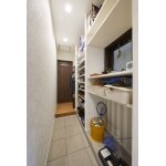 玄関は元々広さがありました。シューズクロークを横手に設けるため、収納は取り外しました。