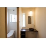 今回は玄関にお客様用のトイレ、奥にご家族用のトイレを設置。 どちらもタンク付きのトイレからタンクの無いタンクレスのトイレにすることで、より広々とした空間になりました。
