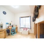 お子様の部屋は、造作ベッドで間仕切りをたてて、スペースを有効活用することができました。 脱衣スペースには収納を確保し衣類やタオル、ストック類の置場をつくりました
