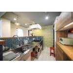 カウンターキッチンを採用!アクセントクロスでお洒落な空間!